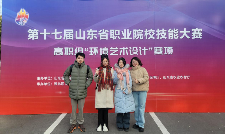 本网讯(艺术学院 周海燕)12月17日-19日,第十七届山东省职业院校技能大赛高职组“环境艺术设计”赛项举行,我校艺术学院环境艺术设计专业杨华蕊、李安琪组成的参赛队伍荣获三等奖。
