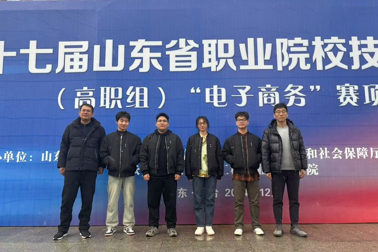 本网讯(工商管理学院 徐豪杰)12月15日-17日,在第十七届山东省职业院校技能大赛高职组“电子商务”赛项中,我校工商管理学院韩天峰、徐豪杰老师指导,王东浩、严文强、周家宇、宋宇涵四名同学组成的参赛队荣获二等奖。