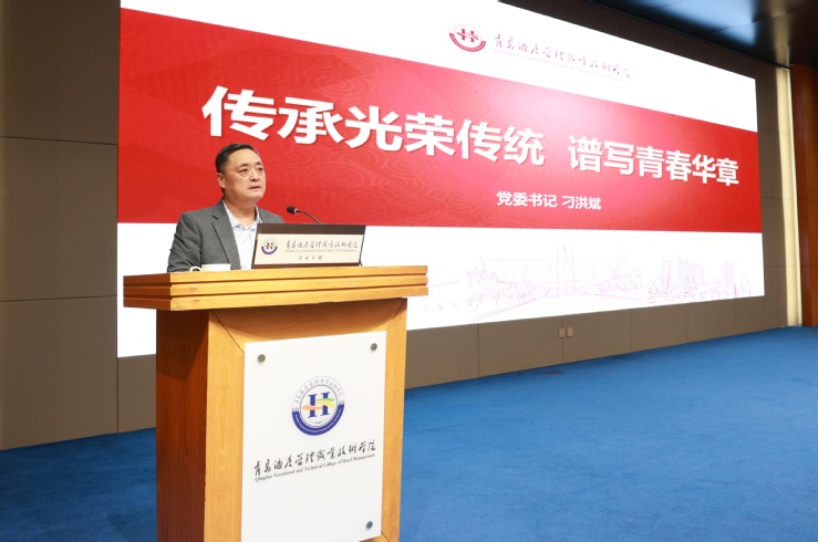 授课中,刁洪斌带领同学们回顾了学校建校80年以来的发展历程与办学特色。他指出,1945年,在“经济凋敝、百业待兴”的时代现状下,私立青岛商科职业学校建立,从创校、合并、更名的不断求索到成功升格高职的关键跨越,学校始终坚守“为党育人、为国育才”的初心。在当前国家大力发展职业教育的背景下,技能实用价值与未来就业竞争力持续走高,学校迎来前景广阔的战略机遇期和黄金发展期。刁洪斌寄语学校青年学子,要热爱祖国,做“胸怀家国”的有志青年;要锤炼本领,做“一技在手”的有为青年;要乐观积极,做“向阳而生”的有识青年。他勉励同学们要把握住大学阶段的每一寸光阴,脚踏实地、锐意进取,走好成长每一步,成就更好的自己,书写无愧于时代和青春的华彩篇章。