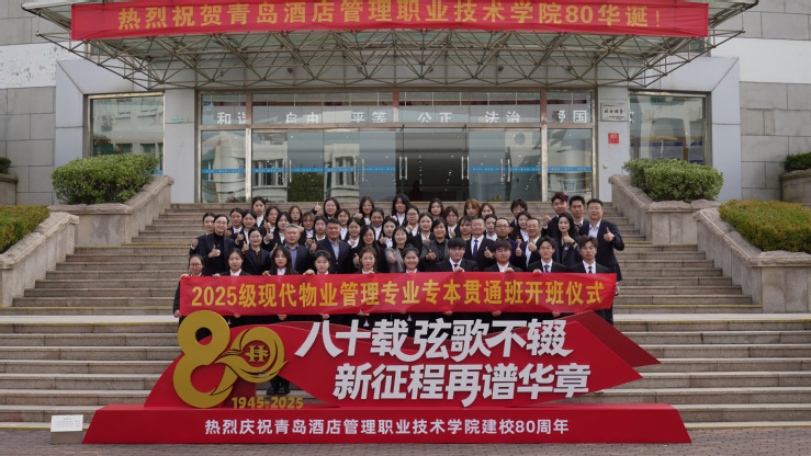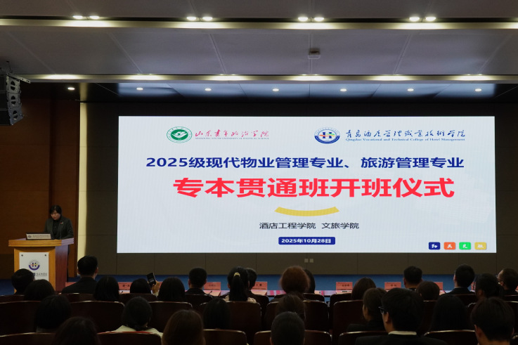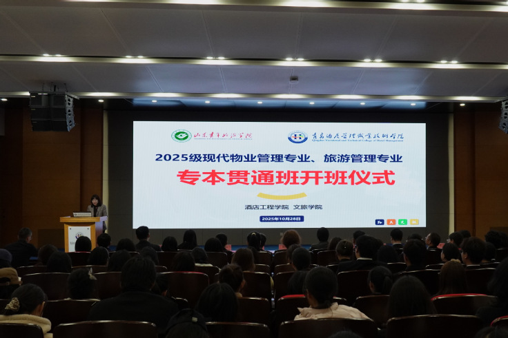 本网讯(酒店工程学院 文旅学院)10月28日,值此建校八十周年华诞之际,2025级现代物业管理专业、旅游管理专业专本贯通班开班仪式在学术报告厅举行。山东青年政治学院现代服务管理学院党委书记赵新燕,学校副校长、工会主席姜玲玲参加活动。