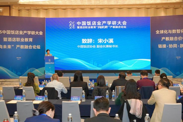 本网讯(酒店管理学院)11月6日,由中国饭店协会指导,我校与上海姜根企业管理有限公司(万豪国际集团)联合主办的2025中国饭店业产学研大会暨酒店职业教育“向未来产教融合论坛在青岛隆重开幕。