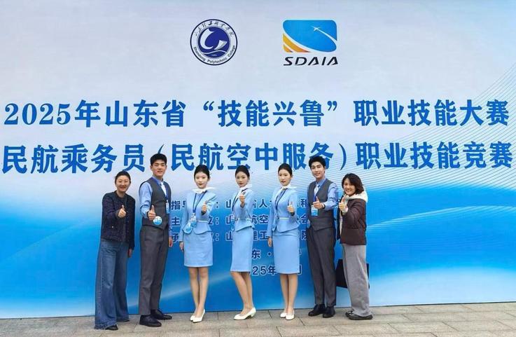 本网讯(酒店管理学院 李倩)11月7日至9日,2025年山东省“技能兴鲁”职业技能大赛民航乘务员(民航空中服务)职业技能竞赛举行,我校酒店管理学院学生项明辉、张欣蕾、连利华、马鸣悦、李继帅组成的参赛团队荣获学生组比赛二等奖,教师李倩荣获教职工组比赛二等奖,教师李倩、尹俊荣获“优秀指导教师”。