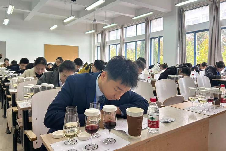 比赛现场,氛围紧张而有序,选手们精神饱满、沉着应对。在理论知识考核环节,选手们展现出扎实的专业基础;品鉴环节通过对酒液色泽、香气与口感的精准辨析,体现出敏锐的专业判断力;侍酒环节动作规范、服务细腻,充分彰显了酒水服务人才出色的实操能力和职业风范。经过激烈角逐,最终评选出一等奖、二等奖及三等奖各6名。