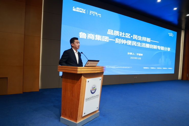 活动中,宁道举以《品质社区·民生样板——鲁商集团一刻钟便民生活圈创新专题分享》为题,系统介绍了鲁商生活服务打造的省级试点项目“银座花园一刻钟便民生活圈”的顶层设计、建设背景、先进经验与取得的社会效益。宁道举以鲁商生活服务的五大事业发展单元导入物业基础服务、增值经营服务、城市服务、餐饮服务、机电服务融合的“一刻钟便民生活圈”建设理念,结合教育教学规律,深入浅出地阐述了鲁商生活服务发展“一店一早”、补齐“一菜一修”、服务“一老一小”的创新实践路径,全景展现了现代物业服务智慧大脑驱动、资源高效利用、生态圈层融合的全新业态。他表示,鲁商生活服务始终坚持以人民为中心的发展思想,聚焦居民生活需求痛点,全身心投入民生服务,体现了鲁商集团的社会责任与国企担当,这种优势将传导到鲁商现代城市服务学院的人才培养全过程,为学院专业建设、课程开发和实践教学注入鲜活案例与产业资源。宁道举勉励学子立足行业前沿,把握城市服务转型升级机遇,以实干精神投身民生事业,现场反响热烈。