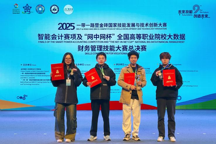 “一带一路”暨金砖国家技能发展与技术创新大赛是经金砖国家最高领导人会晤筹备委员会认可、中华人民共和国外交部备案、金砖国家工商理事会批准的高标准国际大赛。本次智能会计赛项聚焦大数据与人工智能在财务中应用、产业大脑、ESG管理驾驶舱等未来工作场景,以赛为媒、以数治财,全面考查学生的会计信息分析与应用能力、战略与运营决策能力、跨学科综合实践能力。我校学生凭借扎实的专业基础、系统的数智化训练以及稳定的临场发挥,在与全国49支高水平高校队伍的同场竞技中脱颖而出、荣获佳绩。
