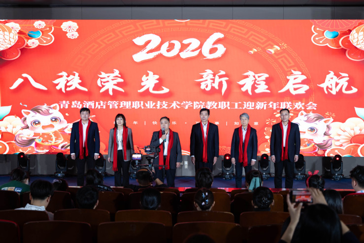 本网讯(工会 吴春雷)骏马献瑞启新岁,欢歌笑语庆团圆。12月25日下午,学校“八秩荣光 新程起航”2026年教职工迎新年联欢会在一片喜庆祥和的氛围中隆重举行,学校党委书记刁洪斌,党委副书记、校长韩西清,党委委员、副校长、工会主席姜玲玲,党委委员、副校长宫恩龙,党委委员、副校长于宏刚,党委委员、纪委书记邱心显与全体教师共同欢度美好时刻。
