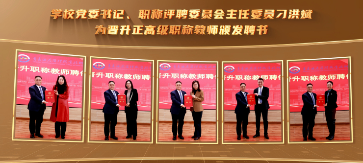 聘任仪式上,刁洪斌为新晋升职称教师颁发聘书。