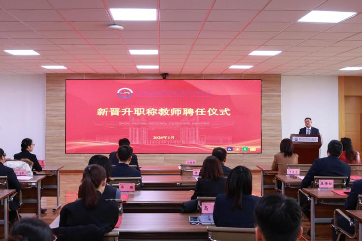 刁洪斌代表学校向新晋升职称的28名教师表示祝贺。他表示,职称晋升既是对老师们潜心育人、深耕讲台的肯定,更是对大家育人成效、专业能力、学术水平的检验和认可,是荣誉更是责任。他对新晋升职称的教师提出三点要求,一是要坚守立德树人初心,当好铸魂育人的“大先生”,真正做到为党育人、为国育才;二是要立足岗位担当使命,当好精业笃行的“实干家”,用实际行动筑牢学校人才培养根基;三是要勇攀事业发展高峰,当好创新突破的“开拓者”,以敢闯敢试的锐气、攻坚克难的韧劲,在职业教育高质量发展的赛道上不断突破、勇攀高峰,为学校高质量发展贡献智慧与力量。