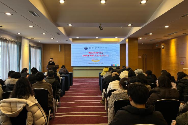本网讯(酒店管理学院)1月15日上午,酒店管理学院在海斯曼数字酒店多功能厅召开2025年工作总结会议暨2026年寒假工作部署会议,传达学习学校寒假工作调度会精神,总结梳理2025年工作成果,安排部署2026年寒假期间重点工作任务。