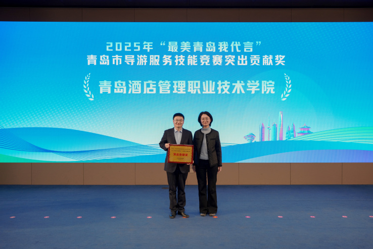 此次颁奖典礼的举办,是我校服务地方文旅产业发展、深化校地合作的重要体现。长期以来,学校依托旅游管理专业优势,坚持以赛促教、以赛促学、以赛促练,持续为行业输送优秀人才,助力青岛文旅人才队伍不断壮大。未来,学校将继续发挥专业特色与办学优势,深度融入地方文旅发展大局,搭建更多高水平交流展示平台,凝聚政行企校多方合力,开展新时代高技能导游人才集群培养,以匠心育人助力青岛文旅事业高质量发展。