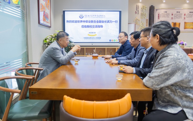韩西清对武力一行的来访表示热烈欢迎,并详细介绍了学校发展历史、专业建设及人才培养等方面的情况,希望双方发挥专业平台优势,积极推动中餐职业教育标准输出和专业人才双向交流,推动学校餐饮类专业办学国际影响力持续提升。武力对学校的热情接待表示感谢,对学校在饮食文化传播交流、餐饮行业人才培养、国际化办学等领域的成果给予高度评价。双方就中餐文化国际传播、餐饮职业教育高质量发展以及深化产教融合等议题进行了深入交流,达成了广泛共识。