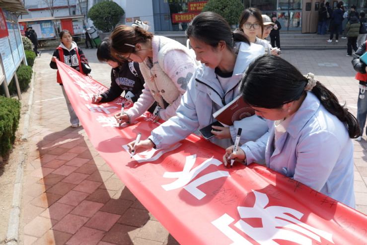 为进一步强化师生节水意识,学校在食堂门前开展全校范围的节水宣传月签名活动。“共绘国家水网 携手节水护水”,传递着节水护水的倡议。活动现场,师生们纷纷驻足,郑重签下自己的名字,以签名践承诺、以行动表决心,形成了“人人关心节水、人人参与节水”的良好校园风尚。