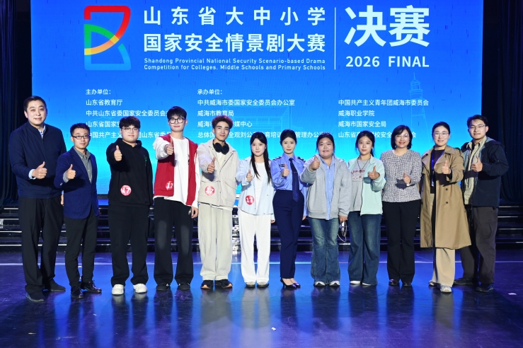 本网讯(学生工作处 酒店管理学院)4月12日至14日,由山东省教育厅、省委国安办、省国家安全厅、团省委联合主办的2026年山东省大中小学国家安全情景剧大赛决赛在威海举行。我校由酒店管理学院西尔扎提·夏吾开提、张雅婷等6名同学主演、王婷老师指导的情景剧《危言》荣获全省二等奖。