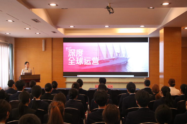 随后,曲鑫以“全球化平台成就更好的自己”为题开展主题讲座。她结合自身职业成长经历,解读了复星企业使命与价值观,介绍了集团高端商务服务体系、“星宸荟”高客运营平台及全球化资源优势,并围绕岗位设置、职业素养、薪酬福利、轮岗机会等学子关切问题展开分享,强调跨文化沟通与极致服务意识的重要性。现场互动热烈,有效增进了校企双方的交流。