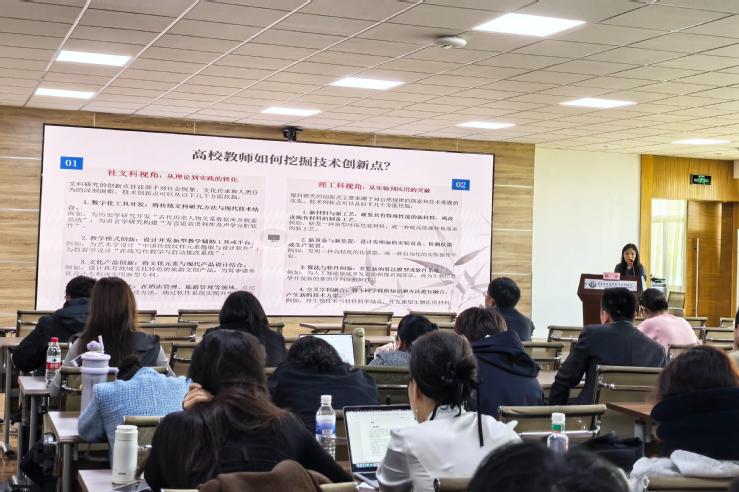 本网讯(科研发展处 刘淑青)在2026年世界知识产权日来临之际,为进一步普及知识产权知识,加大知识产权保护力度,提高我校教师科技创新能力,近日,科研发展处特邀青岛海盈智专利代理事务所副总经理张苗女士作“科研成果转化与知识产权实务”专题讲座。