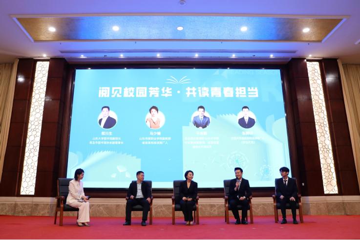 活动分享交流环节以“阅见校园芳华・共读青春担当”为主题,来自山东大学、山东传媒职业学院、我校、济南大学的四名嘉宾同台交流,与全省各地高校师生代表齐聚一堂,深入探讨青春与阅读的双向奔赴,畅谈经典品读对青年成长的滋养价值与文化赋能意义,为全省高校搭建起书香育人、互学互鉴、协同发展的优质交流平台。
