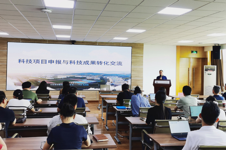 本网讯(科研发展处 魏有广)7月24日下午,学校在行政楼四楼会议室召开科技项目申报与科技成果转化专题培训会。培训会特邀山东城市服务职业学院院士工作站站长杨剑超博士作主题报告。学校党委书记刁洪斌出席培训会。