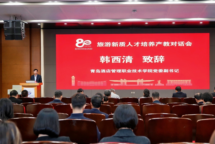韩西清在致辞中代表学校对与会领导、嘉宾的到来表示热烈欢迎。他指出,在文旅产业正处于转型升级的关键时期,培养具备数智素养、创新能力和实践精神的新质人才是时代赋予职业教育的重任,期待以此次对话会为契机,汇聚产教智慧、深化校企协同,共同探索出一条符合中国国情、具有职教特色的新质文旅人才培养之路。
