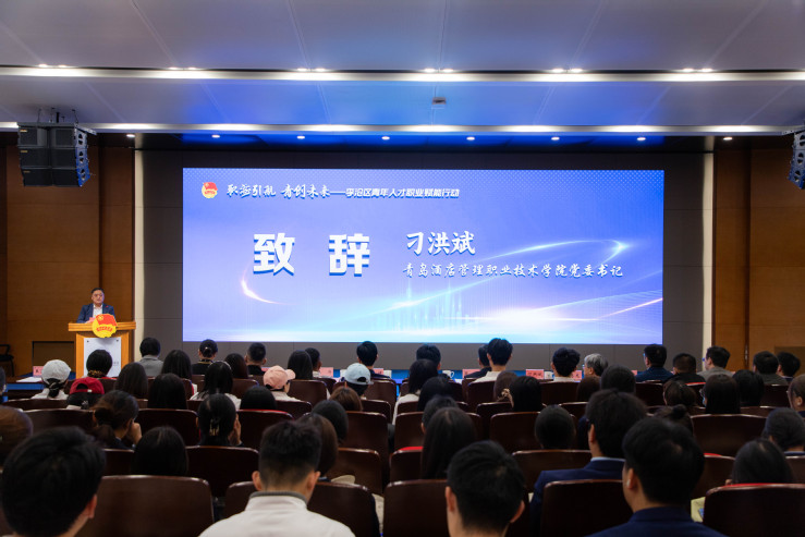 本网讯(团委 徐小田)为深入贯彻落实习近平总书记关于青年工作的重要思想,聚焦青年人才职业能力提升,搭建常态化联系的人才培养与产业需求对接的校地赋能平台,12月12日,由共青团青岛市委指导、李沧团区委和学校团委联合主办的“职海引航 青创未来”李沧区青年人才职业赋能行动专场活动在学校报告厅举办。共青团青岛市委书记周正、青岛市李沧区委副书记纪伟尚、学校党委书记刁洪斌等相关领导以及企业嘉宾、学校师生等300余人共同参与。