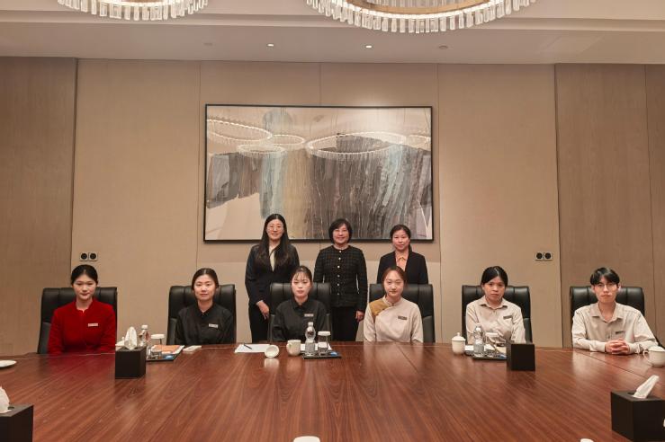 团队一行同步开展访企拓岗活动,与酒店管理层在产教融合、协同育人、课程设计、师资建设、技能创新、实习就业等领域展开深入交流。双方围绕未来校企合作方向展开探讨,强调校企“育人”核心目标,聚焦提升学生实习“获得感”,拓展优质就业岗位,共同研讨并提出产教融合创新工作思路。
