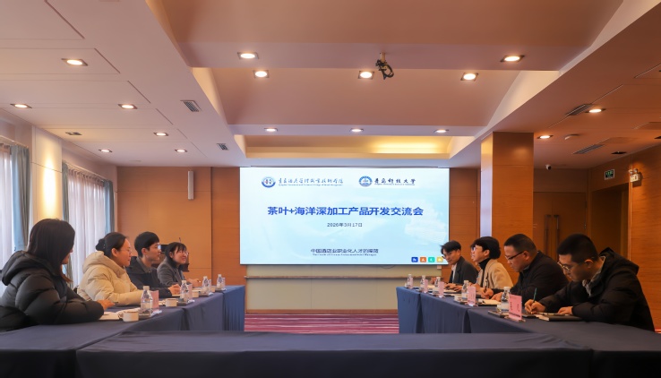酒店管理学院院长冷雪艳介绍了学院在文化传播、技能人才培养及茶产品开发等方面的工作进展和典型案例。孟祥民围绕生物工程学院在海洋生物资源高值化利用方面的科研优势,重点介绍了海洋活性成分提取与应用的最新成果。双方表示,跨学科协同创新是推动传统产业升级的重要路径,期待以此次合作为契机,探索“茶文化+海洋科技”融合发展的更多可能性。